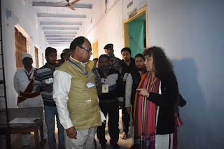 गया : आयुक्त, मगध प्रमंडल, गया सुश्री टी एन बिंधेश्वरी द्वारा आज +2 जिला स्कूल में इंटरमीडिएट परीक्षा केंद्र का औचक निरीक्षण किया। उन्होंने निरीक्षण के दौरान फ्रिस्किंग स्थल पर प्रतिनियुक्त दंडाधिकारी एवं पुलिस पदाधिकारी को एक- एक करके सभी परीक्षार्थियों की ठीक से फ्रिस्किंग करने का निर्देश दिया। परीक्षा केंद्र के कमरों में निरीक्षण के दौरान उपस्थित केंद्र अधीक्षक को फर्स्ट एड की व्यवस्था रखने का निर्देश दिया। उन्होंने परीक्षार्थियों के लिए बोरिंग के पेयजल के स्थान पर शुद्ध पेयजल की व्यवस्था करने का निर्देश दिया। शौचालय की साफ सफाई अच्छी तरह से करवाने को कहा। निरीक्षण के दौरान उन्होंने एक कमरे में खाली पड़े बेंचों को देखकर केंद्राधीक्षक को निर्देश दिया कि यदि बेंच खाली रहता है तो एक बेंच पर एक परीक्षार्थी को बैठवें। उन्होंने केंद्राधीक्षक को निर्देश दिया कि जो भी परीक्षार्थी शौचालय जाए उनके साथ एक स्टाफ निश्चित रूप से भेजा जाए, ताकि उसकी गतिविधि पर नजर रखा जा सके। उन्होंने कमरों के भ्रमण के दौरान अनेक परीक्षार्थी का ओएमआर शीट का अवलोकन किया।