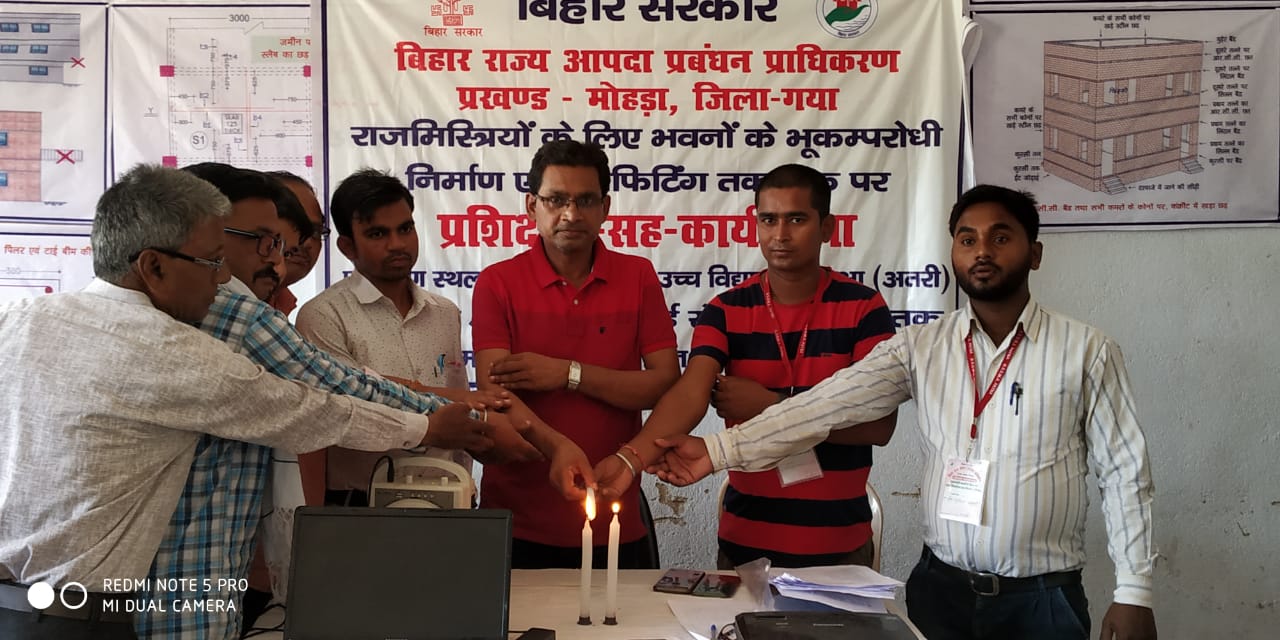 जिसके लिए सरकार की विशेष पहल जारी है। रेट्रीफीकेशन तकनीक के आधार पर यह प्रशिक्षण आधारित है। जिले के 24 प्रखंडों में इस आधार पर प्रत्येक प्रखंडों मे 30- 30 चयनित राज मिस्त्री को निपुण बनाया जा रहा है। जो भूकंपरोधी मकान का निर्माण सफलतापूर्वक करेंगे। वहीं पुराने भवनों को भी भूकंपरोधी बनाने के लिए प्रशिक्षित किया जा रहा है। इस प्रशिक्षण का उद्घाटन दीप प्रज्ज्वलित कर मोहड़ा प्रखंड के बीडीओ राजमिति पासवान ने किया। इस प्रशिक्षण के तहत गया जिले के मोहड़ा प्रखंड में 30 चयनित राज मिस्त्रियों को प्रशिक्षण देकर भूकंपरोधी आवास निर्माण के लिए प्रशिक्षित किया जा रहा है।
