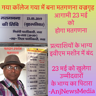 पटना से डोभी जाने वाले वाहन काशीनाथ मोड होते हुए मिर्जा गालिब मोड़- ए एन कॉलेज – कटारी हिल रोड – चंदौती थाना – चंदौती मोड़ – सिकरिया मोड़- पहाड़पुर होते हुए डोभी प्रस्थान करेंगे। मतगणना केंद्र में मतगणना कार्य हेतु सरकारी सेवक, अभ्यर्थी/ चुनाव अभिकर्ता एवं मतगणना अभिकर्ता निर्वाचन आयोग द्वारा अधिकृत व्यक्ति और निर्वाचन से संबंधित विभिन्न कार्य हेतु अधिकृत पास धारक व्यक्ति को ही प्रवेश दिया जाएगा। वाणिज्य भवन में बाराचट्टी और बोधगया, मानविकी भवन में शेरघाटी, गया शहर एवं बेलागंज तथा मानव विज्ञान भवन में वजीरगंज विधानसभा निर्वाचन क्षेत्र के लिए स्ट्रांग रूम बनाया गया है। उन्होंने सभी पदाधिकारी एवं कर्मियों को 23 मई को पूर्वाह्न 6:00 बजे हर हाल में वज्रगृह में उपस्थित होने का निर्देश दिया। मतगणना परिसर में प्राथमिक चिकित्सा की व्यवस्था करने का निर्देश सिविल सर्जन को दिया गया। पर्याप्त संख्या में शौचालय एवं पेयजल की व्यवस्था करने के लिए पीएचइडी को निर्देश दिया गया साथ ही सफाई की मुकम्मल व्यवस्था कराने का निर्देश नगर आयुक्त, नगर निगम को दिया गया। ए आर किदवई भवन के सामने मीडिया कोषांग की स्थापना की गई है, जो 23 मई को प्रातः 6:00 बजे से मतगणना समाप्ति तक कार्यरत रहेगा। मतगणना हॉल में प्रवेश करने के लिए तथा जानकारी के लिए एक हेल्प डेस्क बनाया गया है। सुरक्षा की दृष्टिकोण से संपूर्ण कॉलेज परिसर में सीसीटीवी लगाया गया है। बैठक में उप विकास आयुक्त श्री किशोरी चौधरी, अपर समाहर्ता राजकुमार सिन्हा, जिला लोक शिकायत निवारण पदाधिकारी, नगर पुलिस अधीक्षक, अनुमंडल पदाधिकारी सदर, अनुमंडल पदाधिकारी शेरघाटी, अनुमंडल पुलिस पदाधिकारी शेरघाटी, अनुमंडल पुलिस पदाधिकारी सदर एवं मतगणना संबंधित पदाधिकारी एवं पुलिस पदाधिकारी उपस्थित थे।