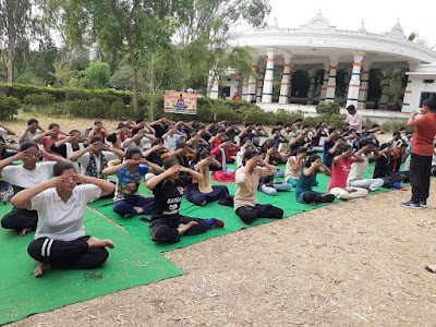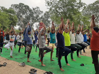 | योग दिवस के मौके पर युवक- युवतियों ने किये योगाभ्यास |