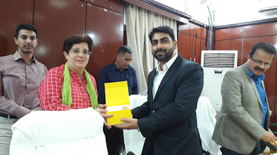 अनुमंडल एवं प्रखंड स्तर के पदाधिकारी से संबंधित आवेदनों को अनुमंडल स्तर पर तथा जिला स्तरीय पदाधिकारी से संबंधित आवेदनों को जिला स्तर कार्यालय पर लिया जाता है। आकांक्षी जिला के संबंध में नीति आयोग की सुश्री मैत्रेयी ने किए जा रहे कार्यों का विवरण प्रस्तुत किया। उन्होंने कहा कि ‘आपका प्रशासन आपके द्वार’ कार्यक्रम के तहत उग्रवाद प्रभावित क्षेत्रों में प्रत्येक 15 दिन पर सभी संबंधित विभागों के साथ कैंप का आयोजन किया जा रहा है। जिसमें उज्जवला योजना, उजाला योजना, प्रधानमंत्री जीवन ज्योति बीमा योजना, जन धन योजना, हर घर बिजली योजना एवं बिहार सरकार की योजनाओं से संबंधित आवेदनों का ऑन द स्पॉट निष्पादन किया जा रहा है। नेशनल डिफेंस कॉलेज नई दिल्ली के सदस्यों ने कई सवाल भी किए जिनका जवाब संबंधित पदाधिकारियों के द्वारा दिया गया टीम के सदस्यों ने दिया। उन्होंने गया जिला में बेहतरीन कार्य करने के लिए यहाँ के पदाधिकारियों की प्रशंसा की। इसके उपरांत श्री सैयद अली मुर्तजा रिजवी संयुक्त सचिव ने सहायक समाहर्ता श्री योगेश कुमार सागर को स्मृति चिन्ह प्रदान किया। इसके उपरांत गया जिला की ओर से उप विकास आयुक्त, सहायक समाहर्ता एवं निदेशक ग्रामीण विकास अभिकरण ने सभी सदस्यों को बारी-बारी से स्मृति चिन्ह प्रदान किया।