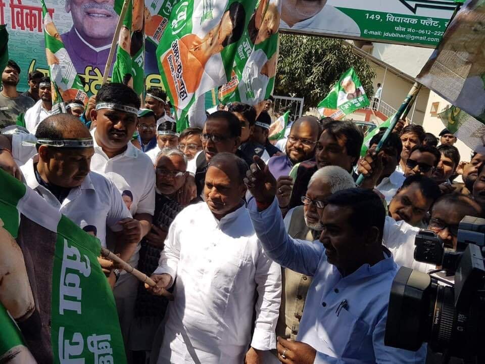 युवा जदयू बिहार प्रदेश के अध्यक्ष सह युवा विधायक अभय कुशवाहा ने युवा जदयू की ओर से पटना में मोटरसाइकिल रैली निकाली संकल्प रैली को सफल तथा ऐतिहासिक बनाने के लिए। जिसमें राज्य सभा सांसद सह जदयू के राष्ट्रीय महासचिव, संगठन, आरसीपी सिंह ने रैली की सफलता की कामना करते हुए हरि झंडी दिखा कर रैली की जागरूकता के लिए बाईक रैली रवाना की। इस रैली का नेतृत्व युवा विधायक सह युवा जदयू बिहार प्रदेश के अध्यक्ष अभय कुशवाहा ने की। पटना के गाँधी मैदान में जदयू का एक दिवसीय संकल्प रैली 3 मार्च को आयोजित होना है। इस संकल्प रैली के जरीय पीएम मोदी पढ़ायेंगे जनसैलाब को पाठ। इस संकल्प रैली के प्रचार के लिए निकाली गई मोटरसाइकिल रैली। जिसमें बड़ी संख्या में युवा कार्यकर्ताओं ने शिरकत किये। विदित हो संकल्प रैली को पीएम मोदी संबोधित करेंगे। जिसमें एनडीए के कई प्रखर नेताओं सहित मुख्यमंत्री नीतीश कुमार, लोजपा सुप्रीमो सह मंत्री रामविलास पासवान का संबोधन होगा। इस रैली के माध्यम से लोक सभा चुनाव 2019 की तैयारी की शंखनाद पीएम मोदी करेंगे, कार्यकर्ताओं तथा जनसैलाब के बीच चुनावी आत्मबल भरेंगे, जिससे ऊर्जांवित हो चुनाव की तैयारी में जुटेंगे नेता तथा कार्यकर्तागण। चुनावी तैयारी की ताना- बाना है यह संकल्प रैली। जिसमें आगामी लोक सभा चुनाव का पाठ पढ़ाया जायेगा। संकल्प रैली के जरीय पीएम मोदी पढ़ायेंगे पटना के ऐतिहासिक गाँधी मैदान में उमड़ी हुई भीड़ को चुनावी विजय की पाठ। विदित 16वीं लोक सभा का कार्य काल समापन की ओर बढ़ चुका है और 17वीं लोक सभा आम चुनाव की तैयारी जारी। नेताओं ने कहा कि विजय का संकल्प लेने की रैली है, संकल्प रैली। आगामी लोक सभा चुनाव- 2019 जीतना लक्ष्य।