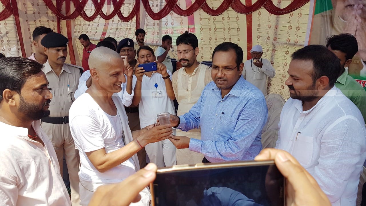 फ्री वाटर सेवा देते हुए  साथ हैं जदयू नेता चन्दन यादव