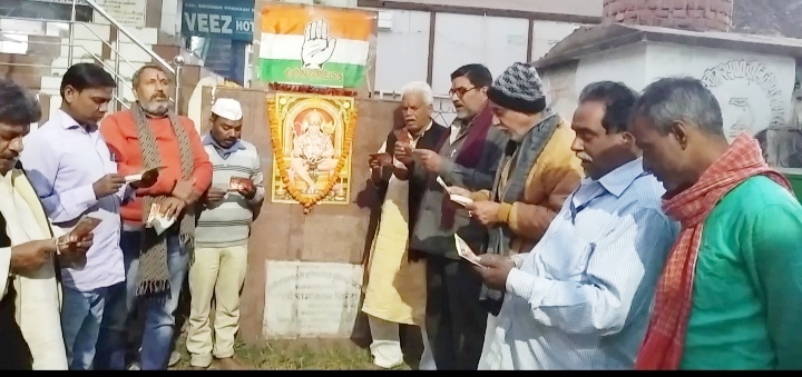 गया : देश में विगत चालीस दिनों से किसान विरोधी कानून को वापस कराने कि मांग को लेकर आंदोलन कर रहे किसानों के जायज मांग को प्रधानमंत्री द्वारा मानने कि सद्बुद्धि हेतु कांग्रेस पार्टी के नेता, कार्यकर्ता ने सामूहिक हनुमान चालीसा का पाठ किया।