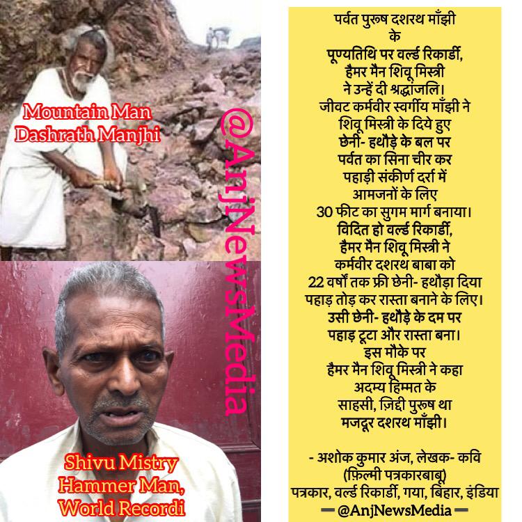 | माऊंटेन मैन दशरथ माँझी को लेखक- कवि- पत्रकार अशोक कुमार अंज ने दिया श्रद्धांजलि |