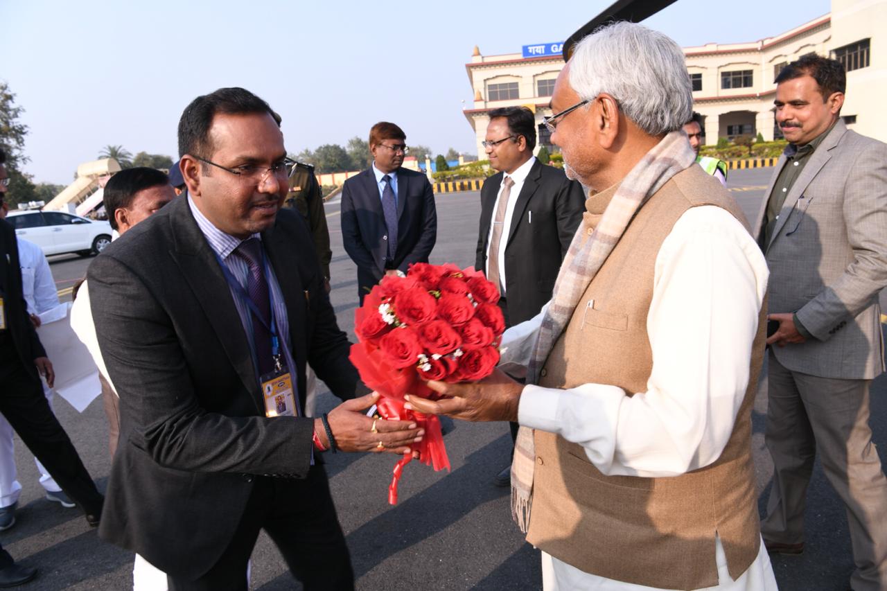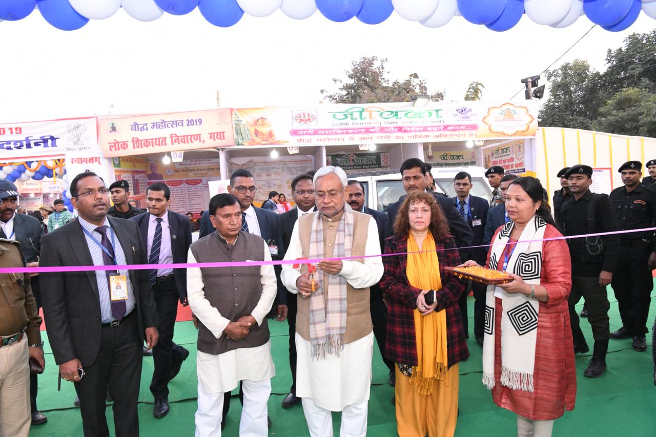 बौद्ध महोत्सव 2019 का उद्घाटन करने मुख्यमंत्री नीतीश कुमार बोधगया पहुँचे। बोधगया अंतरराष्ट्रीय हवाई अड्डा पर जिले के प्रभारी मंत्री सह शिक्षा एवं विधि मंत्री, बिहार सरकार कृष्णनंदन वर्मा पुष्पगुच्छ प्रदान कर उनका गया की पावन धरती पर हार्दिक अभिनंदन किया। इस अवसर पर आयुक्त, मगध प्रमंडल सुश्री टी0एन0 बिंधेश्वरी एवं जिलाधिकारी अभिषेक सिंह ने उन्हें पुष्पगुच्छ प्रदान कर उनका हार्दिक अभिनंदन किया। इस अवसर पर बीटीएमसी के सचिव ने उन्हें खदा प्रदान कर उनका हार्दिक अभिनंदन किया।