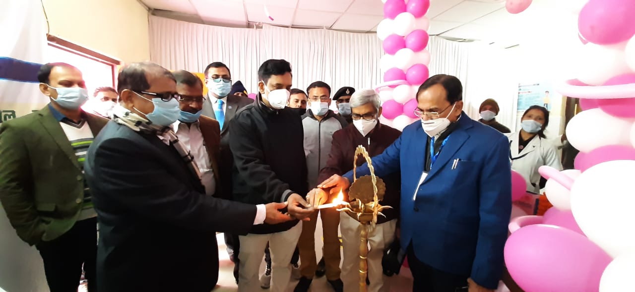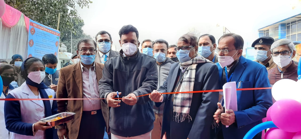 टीकाकरण हेतु बनाये गये वेटिंग हॉल का आयुक्त ने किया उद्घाटन