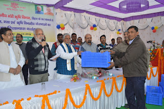 मंत्री ने कहा कि कृषि यांत्रिकीकरण योजना स्वीकृत है एवं किसान कृषि यंत्र क्रय करने के लिये आॅनलाईन आवेदन कर रहें है उन्होंने बताया कि मगध प्रमण्डल में 6470 किसानों ने विभिन्न यंत्रों को क्रय करने के लिये आवेदन किया है, जिसमें से 3029 किसानों के आवेदन को कृषि समन्वयक ने, 1957 आवेदनों को प्रखण्ड कृषि पदाधिकारी ने एवं 1080 आवेदनों को जिला कृषि पदाधिकारी ने सत्यापित कर अग्रसारित किया जिससे 771 परमिट किसानों को प्राप्त हो गये है। उन्होने बताया कि शीघ्र ही कृषि यांत्रिकीकरण मेला का आयोजन भी किया जायेगा। मंत्री ने उद्यान विभाग द्वारा सब्जी एवं प्याज उत्पादक किसनों को सरकार द्वारा 90 प्रतिशत पर मात्र 40 रुपयें में उपलब्ध कराई जा रही प्लास्टिक क्रेट का वितरण भी किया। उन्होंने बताया कि कोई भी किसान अधिकतम 20 क्रेट प्राप्त कर सकता है। उन्होने बताया कि कम पानी में अधिक उपज को ध्यान में रखते हुये प्रधानमंत्री कृषि सिंचाई योजना के उपघटक पर ड्राप मोर क्राॅप के अधीन सूक्ष्म सिंचाई योजना में 90 प्रतिशत अनुदान पर ड्रिप सिंचाई प्रणाली एवं 75 प्रतिशत अनुदान पर स्प्रींकलर सिंचाई प्रणाली उपलब्ध करायी जा रही है। किसान भाई इस योजना का लाभ लेने के लिये वेबसाईट पर आवेदन कर सकते हैं। उन्होने बताया कि योजना के लिये राज्य स्तर से स्प्रींकलर का 2469 हेक्टेयर एवं ड्रिप का 5479 हेक्टेयर का समेकित लक्ष्य निर्धारित है। अभी तक राज्य के 594 किसानों ने आनलाईन आवेदन किया है। मौके पर कार्यक्रम में मगध प्रमण्डल के संयुक्त निदेशक (शष्य) आभान्शु सी॰ जैन, उप निदेशक (शष्य) प्रक्षेत्र विजय शर्मा, उप निदेशक (शष्य) सामान्य संतोष कुमार उत्तम, उप निदेशक, पौधा संरक्षण मुकेश कुमार, जिला कृषि पदाधिकारी, गया अशोक कुमार सिन्हा, उप निदेशक (कृषि अभियंत्रण) भूमि संरक्षण, गया विजय प्रकाश, उप निदेशक रसायन (मिट्टी जाॅच प्रयोगशाला) गया जीवकान्त झा, उप निदेशक, उद्यान, गया राकेश कुमार, सहायक निदेशक, उद्यान गया ओम प्रकाश मिश्रा, सहायक निदेशक, पौधा संरक्षण श्री संजय कुमार, उप परियोजना निदेशक, आत्मा, गया नीरज कुमार वर्मा, जिला परामर्शी सुदामा सिंह, प्रखण्ड कृषि पदाधिकारी, नगर विजय रजक, प्रखण्ड कृषि पदाधिकारी, मानपुर नवीन कुमार, विभिन्न प्रखण्डों के प्रमुख, पंचायतों के मुखिया, सांसद एवं विधायक प्रतिनिधि, भूमि संरक्षण विभाग के जलछाजन विकास दल, कृषि समन्वयक, किसान सलाहकार एवं बड़ी संख्या में प्रगतिशील महिला एवं पुरुष किसान शिरकत किये।
