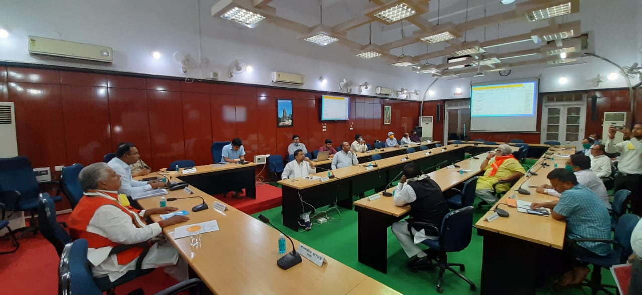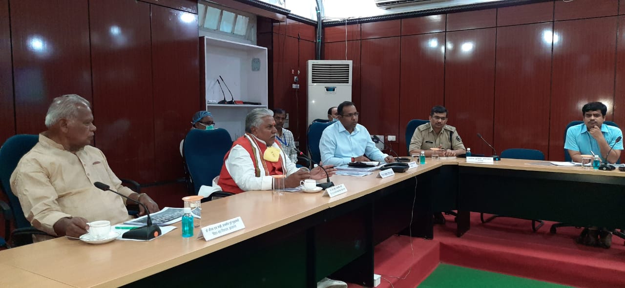 कोरोना से बचाव एवं सुरक्षा की समीक्षा बैठक करते कृषिमंत्री प्रेम कुमार