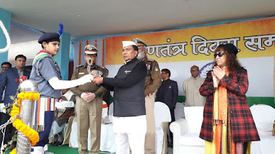 इसी विश्वास के साथ अपने नागरिकों के कल्याण तथा राज्य एवं राष्ट्र के विकास के लिए सतत् प्रयत्नशील रहने का संकल्प लेते हैं। गणतंत्र दिवस के इस पावन अवसर पर एक बार पुनः आप सबों को बहुत सारी हार्दिक बधाई एवं शुभकामनाएँ।* इसके पूर्व वरीय पुलिस अधीक्षक श्री राजीव मिश्रा, जिलाधिकारी श्री अभिषेक सिंह, उप पुलिस महानिरीक्षक, मगध प्रक्षेत्र श्री विनय कुमार, आयुक्त मगध प्रमंडल गया सुश्री टी एन बिंधेश्वरी द्वारा परेड की सलामी ली गई। इस अवसर पर गया के माननीय सांसद श्री हरि मांझी एवं स्वतंत्रता सेनानी श्री विष्णु देव नारायण सिंह उपस्थित थे। मंत्री द्वारा स्वतंत्रता सेनानी विष्णु देव नारायण सिंह को शॉल देकर सम्मानित किया गया तथा परेड में उम्दा प्रदर्शन के लिए सीआरपीएफ को प्रथम, महिला दंगा नियंत्रण टुकड़ी को द्वितीय, महिला बीएमपी टुकड़ी को तृतीय स्थान प्रदान किया गया तथा इनके ग्रुप लीडर को माननीय मंत्री द्वारा स्मृति चिन्ह प्रदान कर सम्मानित किया गया।