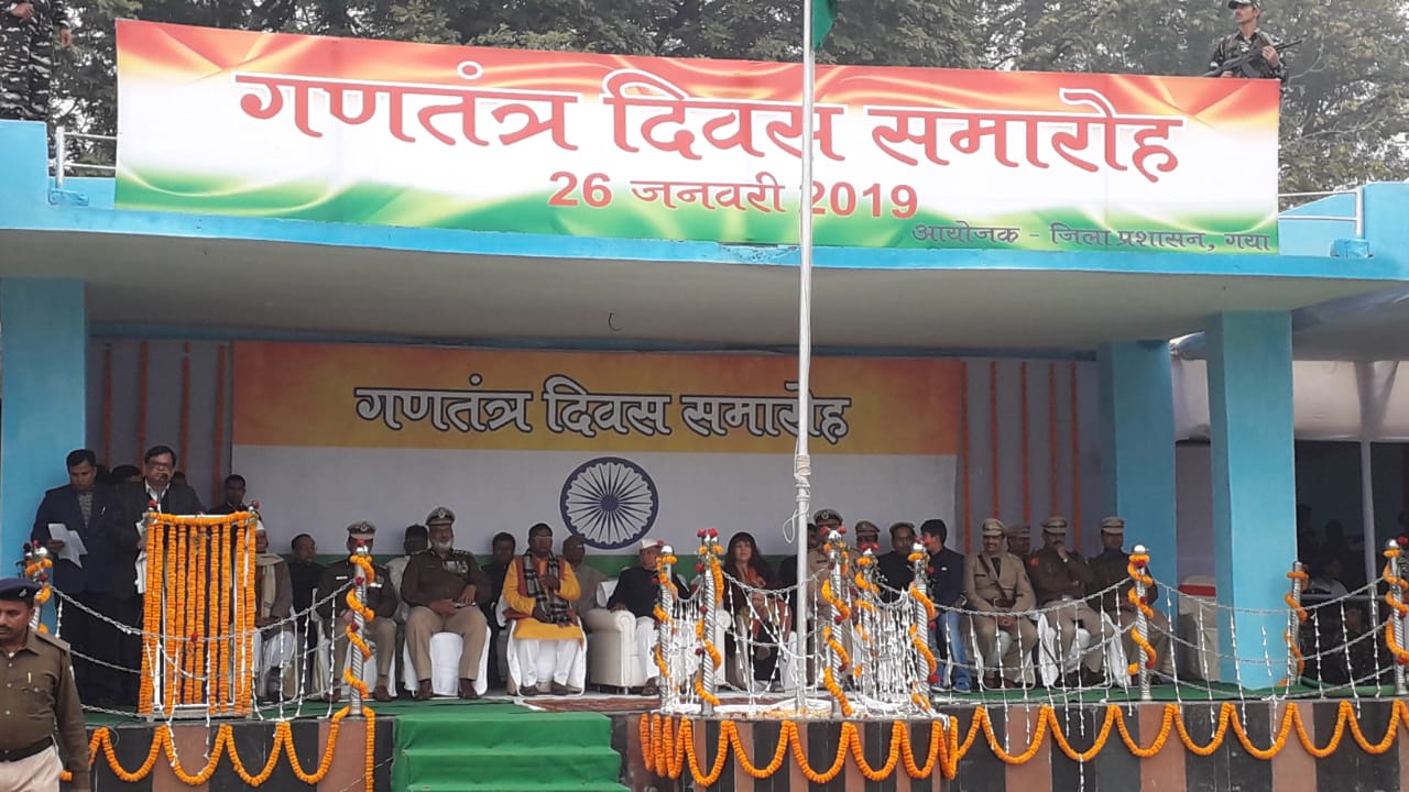 इस मौके पर कृष्णनंदन प्रसाद वर्मा, मंत्री शिक्षा एवं विधि विभाग, बिहार सरकार सह गया जिला के प्रभारी मंत्री द्वारा तिरंगा झंडा फहराया गया। इसके पूर्व उन्होंने परेड का निरीक्षण किया तथा जवानों की सलामी ली। उन्होंने जिलावासियों को संबोधित करते हुए कहा कि *ज्ञान एवं मोक्ष की पावन भूमि को नमन करते हुए आज 70वें गणतंत्र दिवस के अवसर पर, मैं सभी जिलावासियों को हार्दिक शुभकामनाएँ देता हूँ।