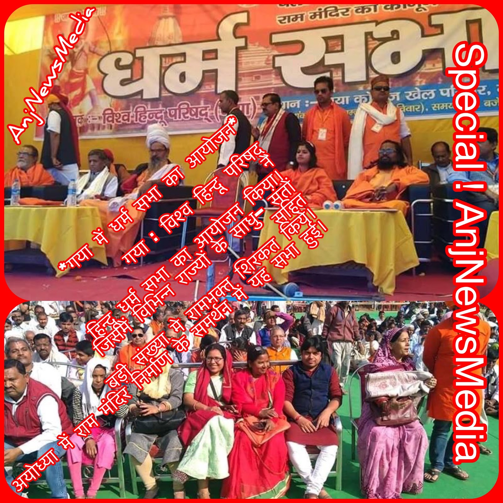 गया : विश्व हिन्दू परिषद् ने हिन्दू धर्म सभा का आयोजन किया। जिसमें विभिन्न राज्यों के साधु- संतों सहित बड़ी संख्या मे रामभक्त शिरकत किये। अयोध्या में राम मंदिर निर्माण के समर्थन में यह सभा हुई।