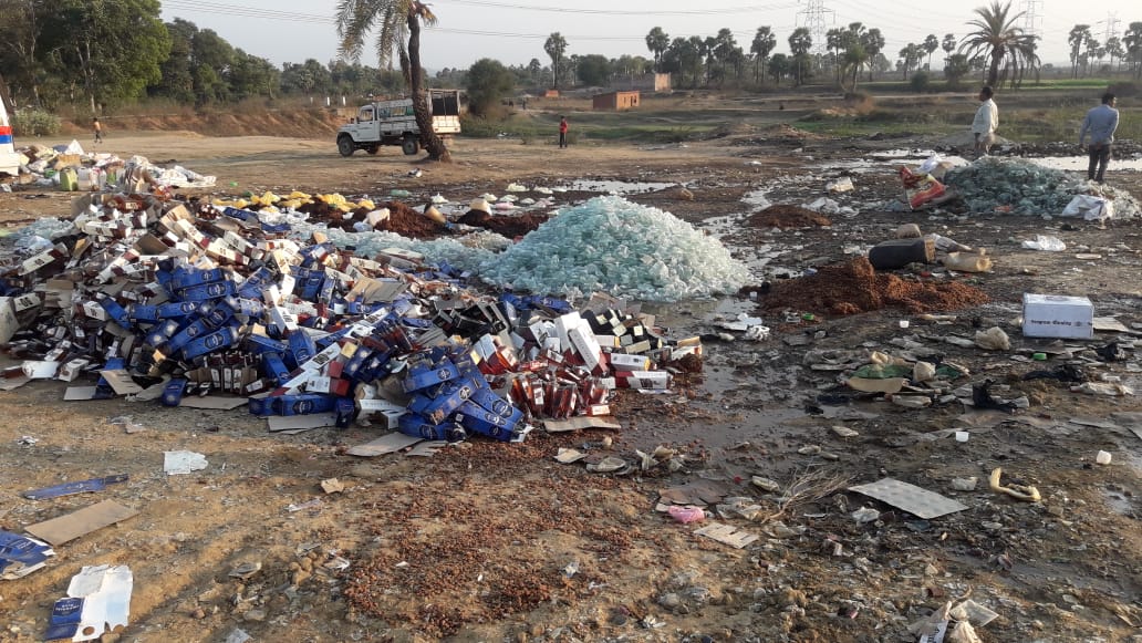 गया : जिला पदाधिकारी अभिषेक सिंह के आदेशानुसार,प्रतिनियुक्त दंडाधिकारी अरुण कुमार सिंह,अनुमंडल लोकशिकायत निवारण पदाधिकारी, सदर, गया की उपस्थिति में दि0 28.02.2019 को पुलिस विभाग के 32 थानों के कुल 163 कांडो के कुल शराब 8217.65 ली0 एवं कुल 777.5 kg महुआ फूल और उत्पाद विभाग के कुल 40 कांडो के कुल 1744.76 ली0 शराब एवं 2623 kg महुआ फूल विनष्ट किया गया। वाणिज्यकर विभाग के 01 कांड के कुल शराब 3837.46 ली0 शराब विनष्ट किया गया।