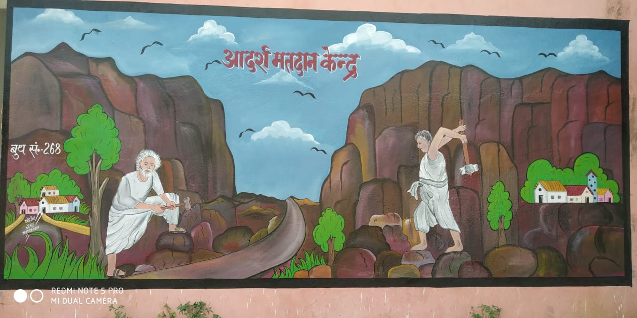 पर्वत पुरूष दशरथ माँझी का घाटी बना आदर्श मतदान केन्द्र की झाँकी