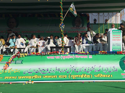 वहीं विधायक अभय कुशवाहा ने उन्हें प्रतीक चिन्ह भेंट कर तथा शॉल ओढ़ा कर सम्मानित किये। वहीं जदयू किसान प्रकोष्ठ के वरीय नेता कमलेश कुमार वर्मा का किसानी का प्रतीक कुदाल के साथ प्रदर्शन शानदार रहा।