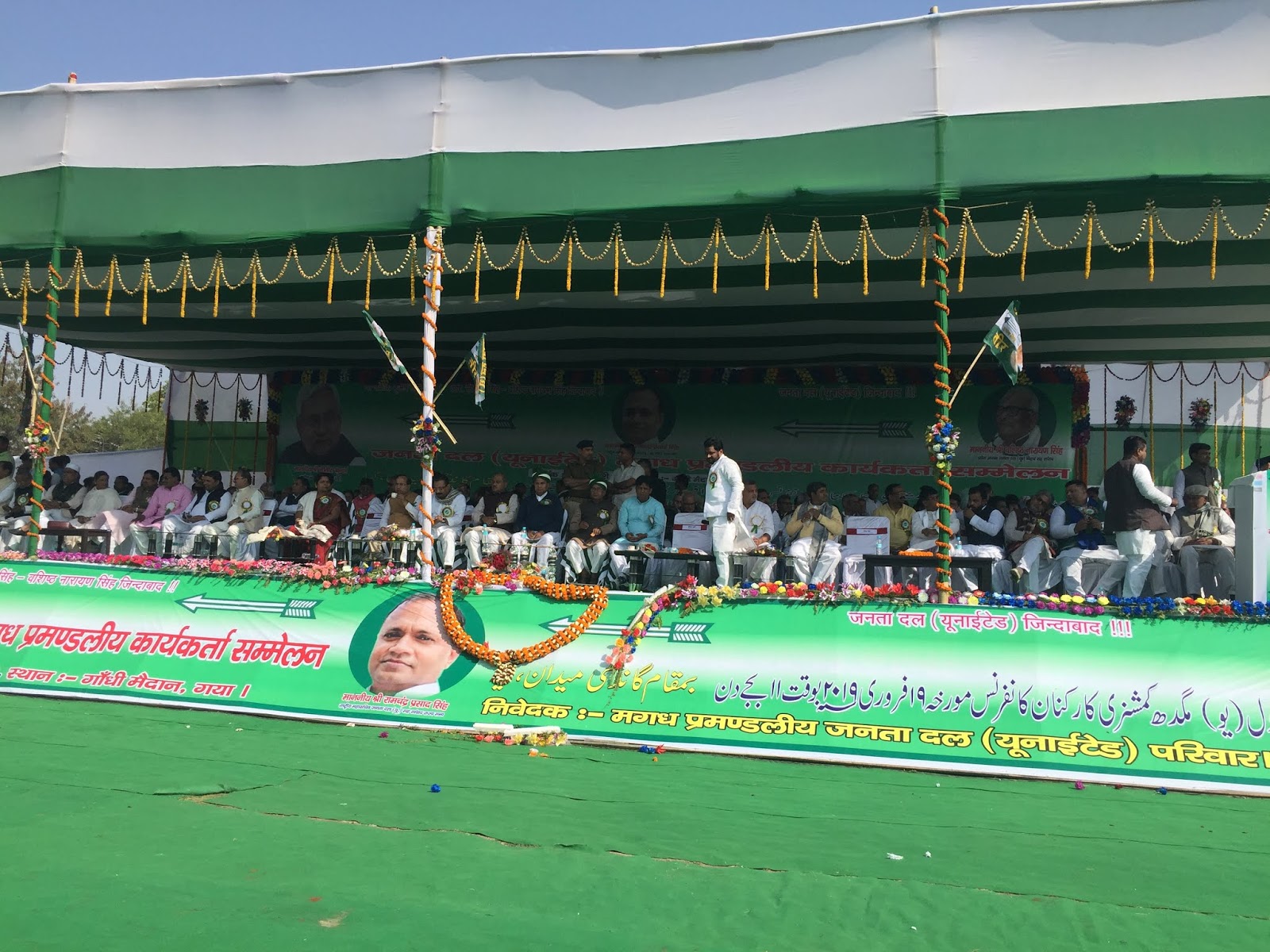 गया गाँधी मैदान में जदयू का एक दिवसीय प्रमंडलीय कार्यकर्ता सम्मेलन का उद्घाटन दीप प्रज्जवलित कर राष्ट्रीय महासचिव सह राज्य सभा सांसद रामचन्द्र प्रसाद सिंह ने किया।