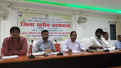 इसके पूर्व उप विकास आयुक्त श्री किशोरी चौधरी ने कार्यशाला को संबोधित करते हुए कहा कि 2 अक्टूबर 2019 को बिहार के माननीय मुख्यमंत्री द्वारा जल- जीवन- हरियाली योजना का शुभारंभ किया जा रहा है। एक एकड़ के नीचे के जलाशय का निर्माण मनरेगा से किया जाएगा तथा 1 एकड़ से ऊपर के जलाशय का निर्माण अन्य संबंधित विभाग द्वारा कराया जाएगा। उन्होंने कहा कि लक्ष्य से अधिक सोख़्ता का निर्माण करें और जिला को आगे रखें। जिलाधिकारी द्वारा जल- जीवन -हरियाली योजना के सफल संचालन हेतु 9 सदस्यीय समिति का गठन किया गया है। जिसके द्वारा जल -जीवन- हरियाली योजना का अनुश्रवण किया जाएगा।