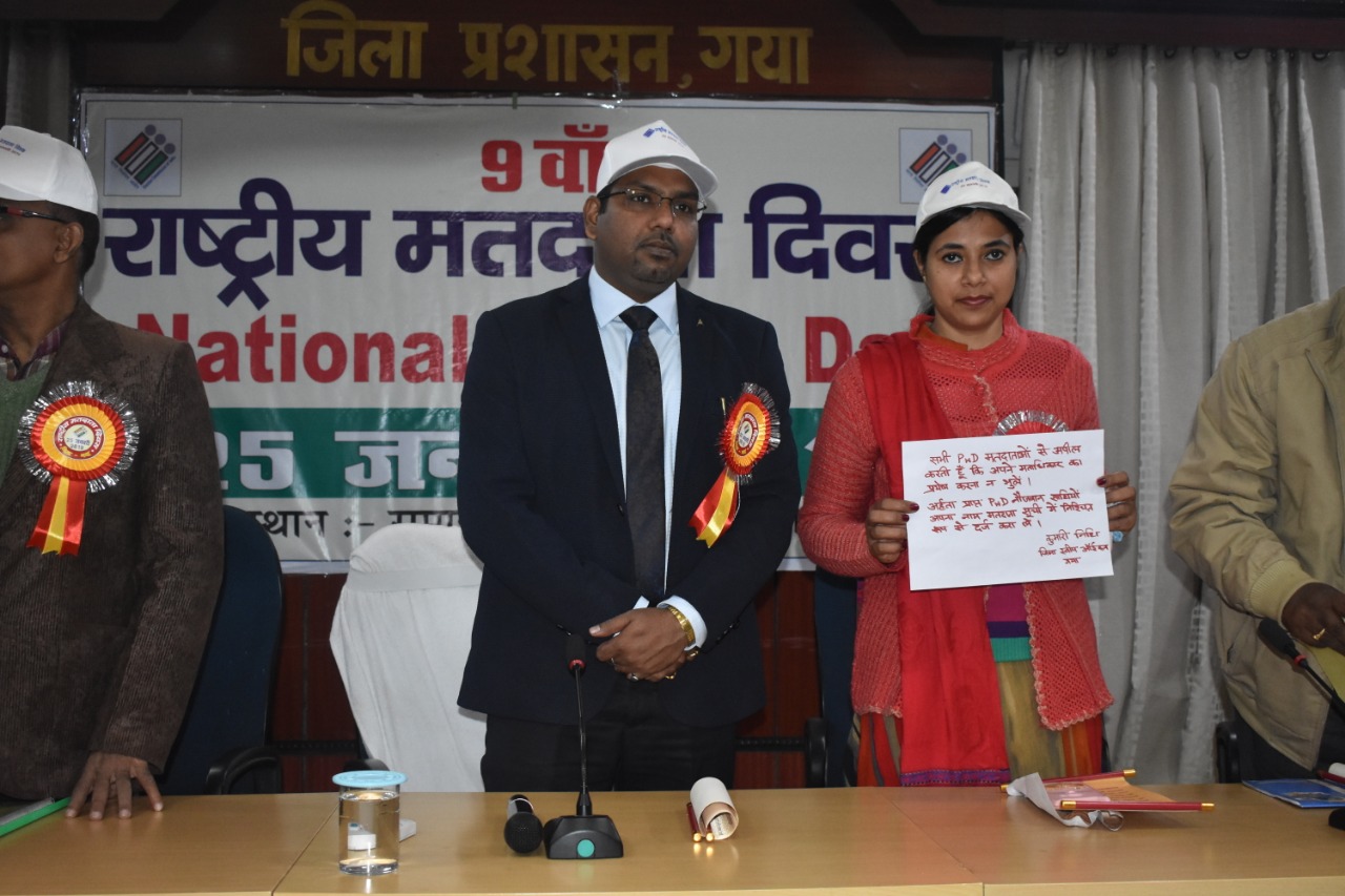 इस अवसर पर गया जिला के स्वीप आइकन कुमारी निधि, उप विकास आयुक्त श्री किशोरी चौधरी, अपर समाहर्ता राजकुमार सिन्हा, सिविल सर्जन डॉ राजेन्द्र प्रसाद सिन्हा, निदेशक जिला ग्रामीण विकास अभिकरण संतोष कुमार, जिला प्रबंधक राज्य खाद्य निगम कृष्णमोहन प्रसाद, जिला परिवहन पदाधिकारी, उप निदेशक जन संपर्क सह स्वीप नोडल पदाधिकारी नागेंद्र कुमार गुप्ता, उप निर्वाचन पदाधिकारी मथुरा बड़ईक, डीसीएलआर सदर ललित भूषण, अवर निर्वाचन पदाधिकारी श्रीमती रंजू कुमारी उपस्थित थे। इस अवसर पर 9वां राष्ट्रीय मतदाता दिवस के अवसर पर मुख्य चुनाव आयुक्त अरोड़ा द्वारा देश के सभी मतदाताओं को जारी अपील को सुनाया गया।