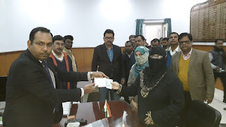 गया : सऊदी अरब में रहने वाले आबिद हुसैन की मृत्यु कार दुर्घटना में हो गई थी। भारतीय दूतावास एवं रियाद दूतावास के माध्यम से जांच किए जाने के उपरांत उनके वैधानिक उत्तराधिकारी शबनम हुसैन को ₹328125 का वैधानिक बकाया का स्टेट बैंक ऑफ़ इंडिया का चेक जिलाधिकारी अभिषेक सिंह के कर कमलों से प्रदान किया गया। इस अवसर पर जिलाधिकारी ने उनके परिजनों यथा उनकी पत्नी उनके बेटे एवं बेटी से वार्ता कर वर्तमान स्थिति की जानकारी ली तथा उन्हें इस दुख की घड़ी में सांत्वना देते हुए हिम्मत से जीवन मे आगे बढ़ने हेतू ढाढस बंधाया तथा अपनी शुभकामनाएं दी। स्वर्गीय आबिद हुसैन की बेटी ने बताया कि वह बीएससी की पढ़ाई कर रही है, जिलाधिकारी ने उसे आगे की पढ़ाई जारी रख उच्च पद के लिए तैयारी करने की प्रेरणा दी। उनके बेटे को भी आगे बढ़ने की प्रेरणा दी। इस अवसर पर उप विकास आयुक्त किशोरी चौधरी, जिला नजारत उप समाहर्त्ता मोहम्मद इजतबा हुसैन, उप निदेशक जनसंपर्क नागेंद्र कुमार गुप्ता, सामान्य शाखा के प्रभारी उप समाहर्ता रविशंकर शर्मा उपस्थित थे।