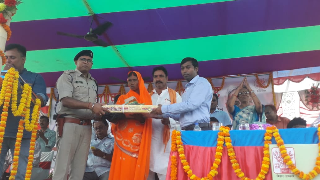 आपदा प्रबंधन के तहत मृतक सुभाष दास के पुत्र कुंदन दास को ₹400000 का चेक उप विकास आयुक्त और सहायक समाहर्ता द्वारा प्रदान किया गया। आयुष्मान भारत के तहत 14 लाभुकों को गोल्डन कार्ड उपलब्ध कराया गया। जिनमें से कंचन देवी, शकुंतला देवी, कुंती देवी, जूली देवी एवं नजबुन बीवी को उप विकास आयुक्त, सहायक समाहर्ता, डिप्टी कमांडेंट, सिविल सर्जन, निदेशक डीआरडीए द्वारा क्रमसः गोल्डन कार्ड प्रदान किया गया। इस अवसर पर सैकड़ों लाभुकों को ऑन द स्पॉट जांच कर 58 विकलांगता प्रमाण पत्र उपलब्ध कराया गया। जिनमें से महेंद्र कुमार पिता केदार साव, विपिन कुमार पिता दीपक कुमार, रोशन कुमार पिता उदय भुइयां और टुनटुन कुमार पिता राजेश यादव को क्रमशः उप विकास आयुक्त, सहायक समाहर्ता, सिविल सर्जन द्वारा प्रमाण पत्र प्रदान किया गया। कस्तूरबा गांधी बालिका विद्यालय के सभी छात्राओं को स्वच्छता कीट प्रदान किया गया।