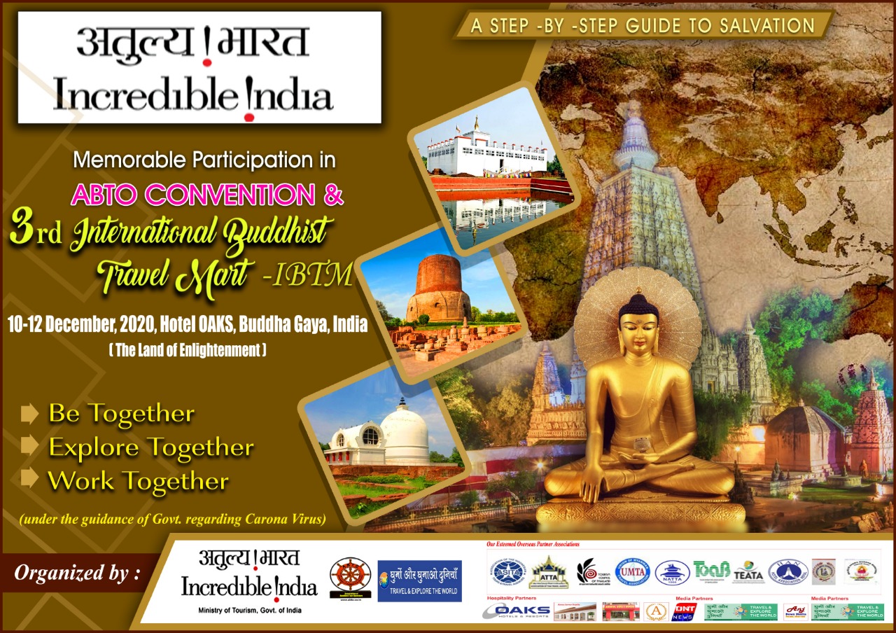 गया : बोधगया में देशी-विदेशी बुद्धिस्ट पर्यटकों को आकर्षित और सरकार से विभिन्न स्तरों पर वार्ता कर इस क्षेत्र में पर्यटकीय सुविधाओं को अंतरराष्ट्रीय स्तर का करने के लिए एसोसिएशन फ़ॉर बुद्धिस्ट टूर ऑपरेटर “एबीटीओ कनवेंशन और आईबीटीएम मेला” का आयोजन कर रही है। जिसका मुख्य उद्देश्य “बुद्ध के रतन सूत्र से कोरोना को हराकर विश्व पर्यटन को पुनः बहाल और बुलंद करना रहेगा ” इस बार भी एबीटीओ कन्वेंशन और आईबीटीएम मेला का तीन दिवसीय आयोजन कल दिनांक 10 दिसम्बर से 12 दिसम्बर तक बोधगया के होटल ऑक्स में किया जा रहा है।
