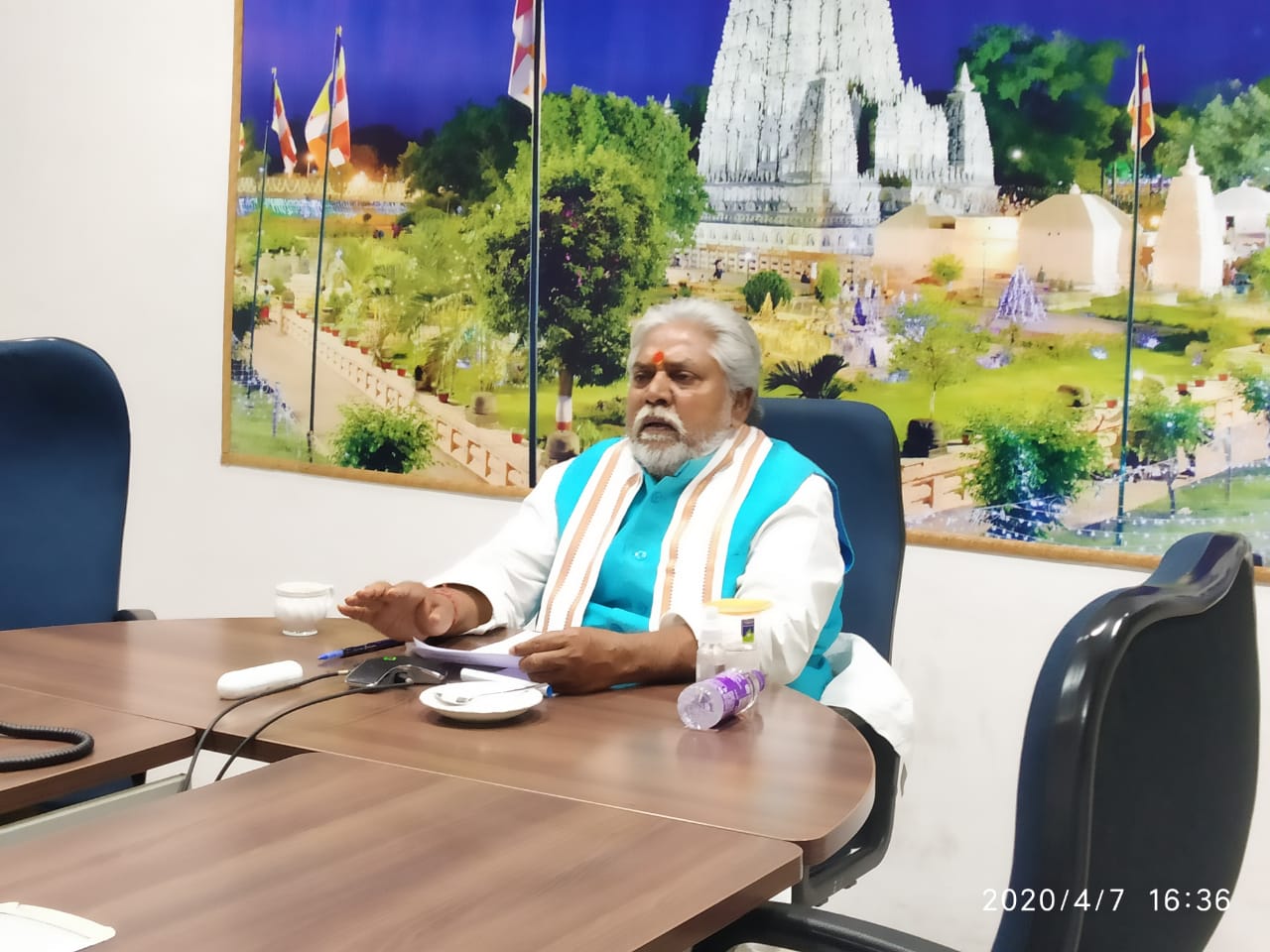 | वीडियो कॉन्फ़्रेंसिंग करते मिनिस्टर प्रेम कुमार |