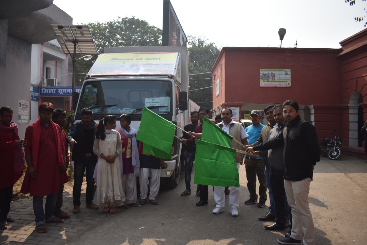 गया : आम जनता को सरकारी योजनाओं के लाभ से अवगत कराने एवं उन्हें प्राप्त करने की प्रक्रिया बताने के उद्देश्य से बिहार सरकार से प्रमुख कल्याणकारी योजनाओं को एलईडी स्क्रीन के माध्यम से दिखलाने एवं बाल विवाह, दहेज प्रथा उन्मूलन तथा शराबबंदी अभियान को जन-जन तक पहुंचाने के उद्देश्य से सूचना एवं जनसंपर्क विभाग, बिहार सरकार द्वारा विशेष प्रचार जागरूकता रथ जिला के सभी नगर निकाय के सभी वार्डों, सभी पंचायत के तीन-तीन ग्रामों में प्रदर्शित करने हेतु चलाया जा रहा है। इसी कड़ी में गया नगर निगम के सभी 53 वार्डों में कार्यक्रम प्रदर्शन करने हेतु महापौर गणेश पासवान एवं उप निदेशक जनसंपर्क मगध प्रमंडल नागेंद्र कुमार गुप्ता द्वारा हरी झंडी दिखाकर विशेष प्रचार जागरूकता रथ को रवाना किया गया।