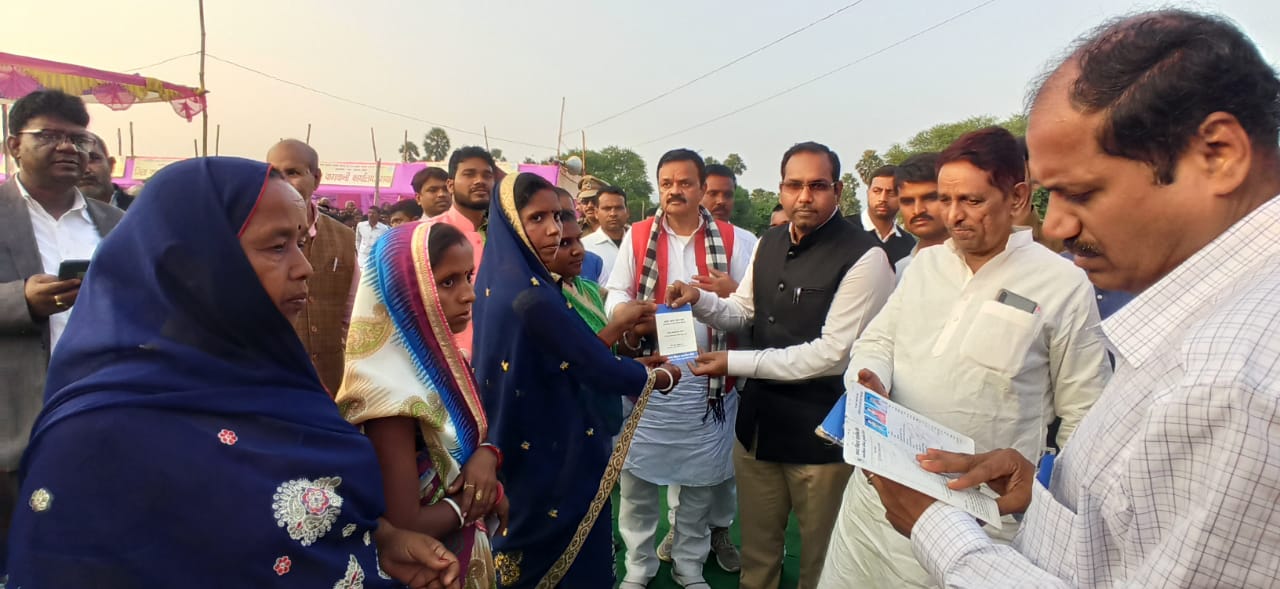 लाभार्थियों को लाभ योजना का सुविधा कार्ड प्रदान करते डीएम अभिषेक सिंह व अन्य |