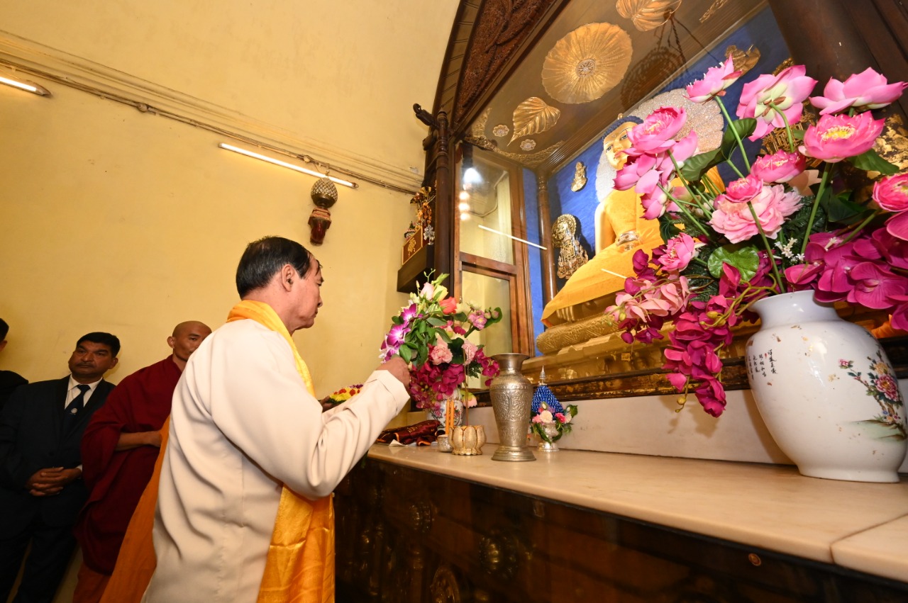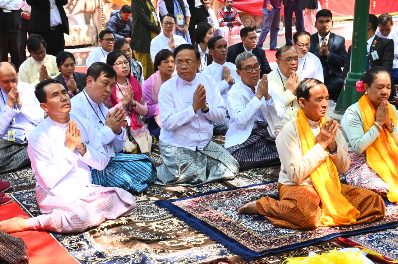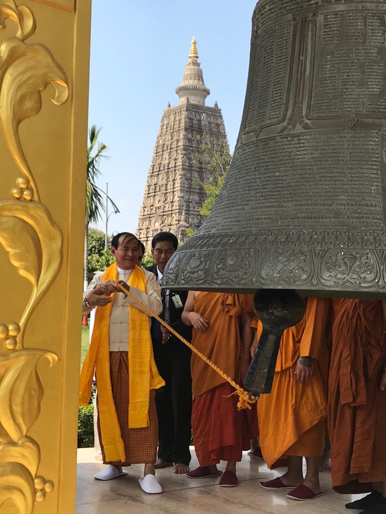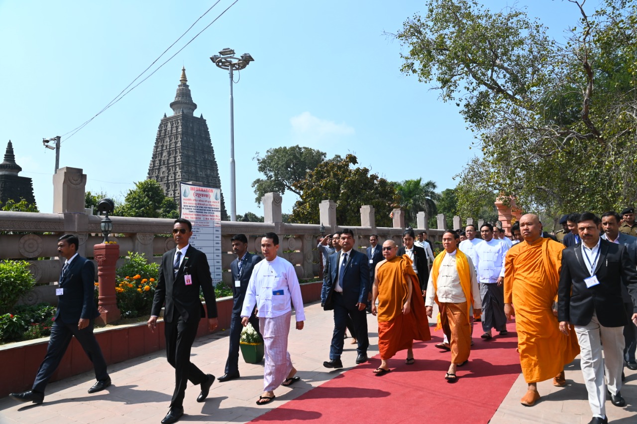 राष्ट्रपति 28 सदस्यीय प्रतिनिधिमंडल के साथ हैं। 3 कैबिनेट मिनिस्टर और एक रखेन स्टेट के मुख्यमंत्री, इंटरनेशनल कॉरपोरेशन के यूनियन मिनिस्ट्री यू क्वाये तेन, रिलीजियस ऑफ एंड कल्चर केंद्रीय मंत्री Thura u Aung Ao, तथा ट्रांसपोर्ट एंड कम्युनिकेशन विभाग के केंद्रीय मंत्री टनंद सीन माउंड भी शामिल हैं। ज्ञान एवं मोक्ष की पावन धरती पर म्यांमार के राष्ट्रपति महामहिम यू मिंट का पदार्पण हुआ।