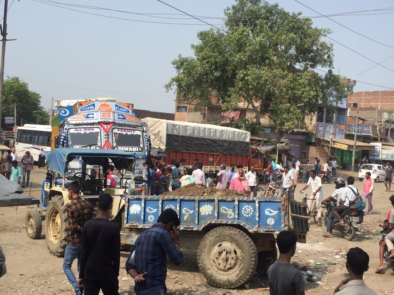 | सड़क निर्माण के लिए वजीरगंज में सड़क जाम किये लोग |