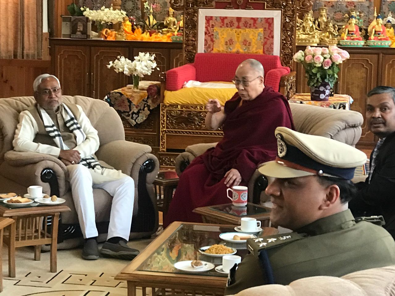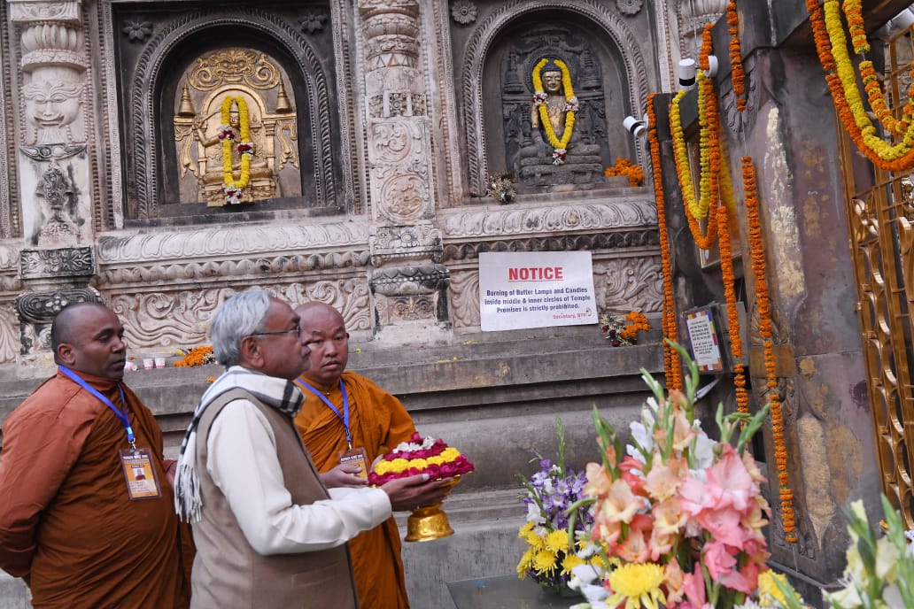 सीएम ने महाबोधि मंदिर में की पूजा और दलाईलामा से मिले