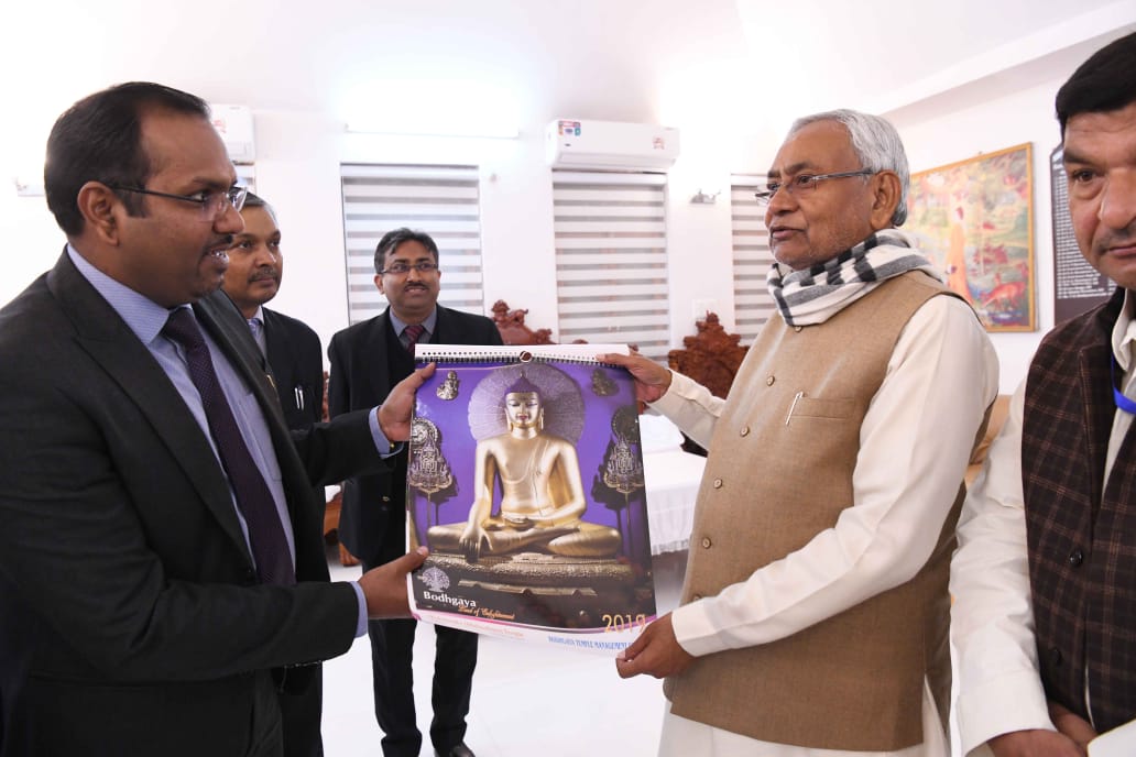 गया : मुख्यमंत्री नीतीश कुमार बोधगया पहुँचे और विश्वदाय महाबोधि मंदिर के गर्भगृह में महापुरूष बुद्ध की पूजा- अर्चना किये। सीएम ने महाबोधि मंदिर में बिहार में शांति और सद्भाव की अर्चना की। इसी क्रम में सीएम नीतीश ने तिब्बती बौद्धधर्मगुरू दलाई लामा से भेंट किये तथा उन्हें नव वर्ष- 2019 की बधाई- शुभकामनाएँ दिये। सीएम ने गुरू दलाई लामा के स्वस्थ्य जीवन की कामना किये। ज़ाहिर हो इन दिनों बौद्धधर्मगुरू दलाई लामा का प्रवास बोधगया में है और प्रवचन सहित धार्मिक कार्यक्रम का आयोजन जारी है। विशेष विमान से सीएम पहुँचे तथा बौद्धधर्मगुरू दलाई लामा से मिले और उनका कुशल हाल जाने।