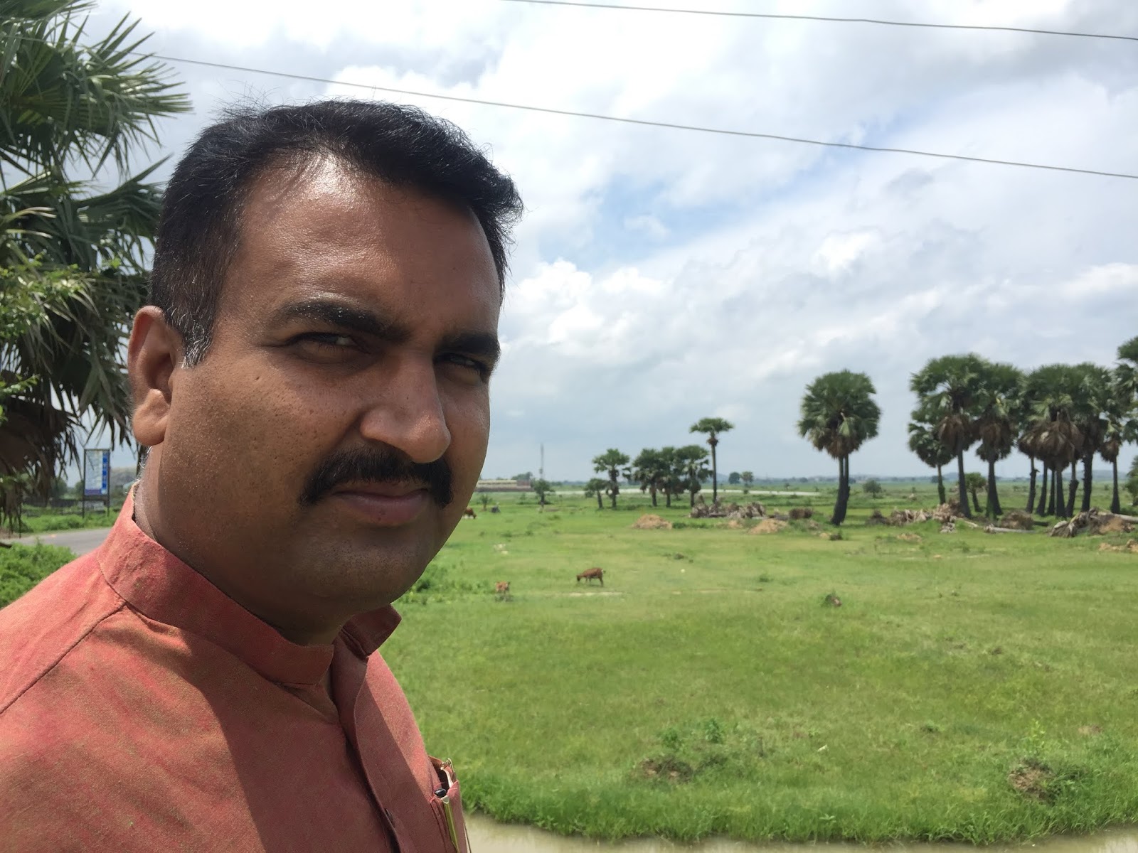 खेतों  के सुखाड़ निहारते युवा नेता चितरंजन