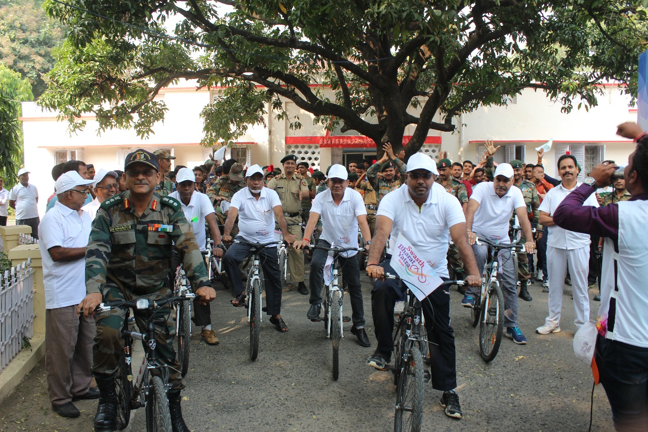 गया : राष्ट्रपिता बापू महात्मा गांधी की 150वीं जयंती के सुअवसर पर निकाली गई जागरूकता साईकिल रैली। जागरूकता साइकिल रैली गया के जिला अतिथि गृह के प्रांगण से प्रारंभ होकर मिर्जा गालिब कॉलेज होते हुए गांधी मैदान का चक्कर लगाते हुए गांधी मंडप में समाप्त हुई। इस रैली में मुख्य अतिथि के रूप में जिलाधिकारी अभिषेक सिंह शामिल हुए तथा सिविल सर्जन राजेंद्र प्रसाद, अनुमंडल पदाधिकारी सूरज कुमार सिन्हा, निदेशक, डीआरडीए, संतोष कुमार, ज़िला प्रोग्राम प्रबंधक, ज़िला स्वास्थ्य समिति, गया मनीष कुमार, एनसीसी के कैडेट्स, उतरी भारत से आए हुए अतिथि एवं अन्य गणमान्य नागरिक भाग लिए। सर्वप्रथम जिलाधिकारी व वरीय पदाधिकारियों ने स्वयं साइकिल पर सवार होकर निर्धारित रास्ते से चलकर गांधी मैदान पहुंचकर इस आयोजन को सफल बनाया। इस साइकिल यात्रा में संपूर्ण रास्ते में EAT RIGHT INDIA, आज से थोड़ा चीनी, नमक, तेल एवं बाहर के खाने को कम करने के नारे जन जागरूकता के लिए लगाए गए ये।