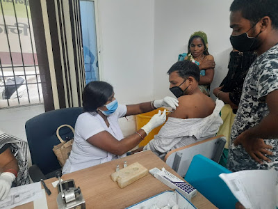 उपरोक्त परिप्रेक्ष्य में *कोविड-19 टीकाकरण हेतु आज पूरे जिले में मेगा वैक्सीनेशन कैंप का आयोजन किया गया था, जिसके उत्साहजनक परिणाम प्राप्त हुए हैं। पूरे जिले में 244 टीकाकरण सत्र स्थल पर 18 प्लस तथा 45 प्लस आयु वर्ग के लोगों को टीका लगाया गया है, जिसमें 21791 लोगों ने टीका लिया है, जो लक्ष्य का 75% है।*
