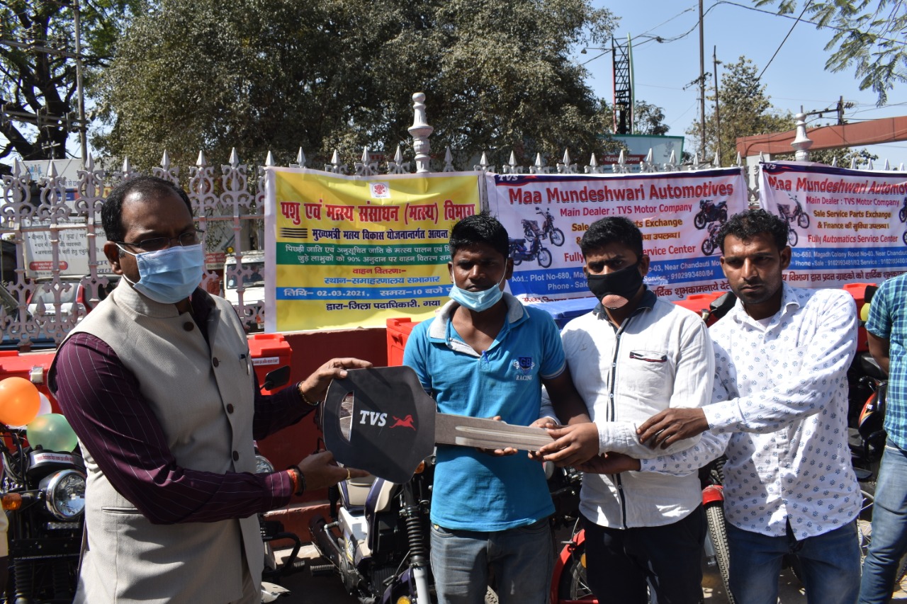 मत्स्य व्यवसाय से जुड़े व्यक्तियों के बीच चार चक्का वाहन, तीन चक्का वाहन एवं मोपेड सह आइस बॉक्स का वितरण