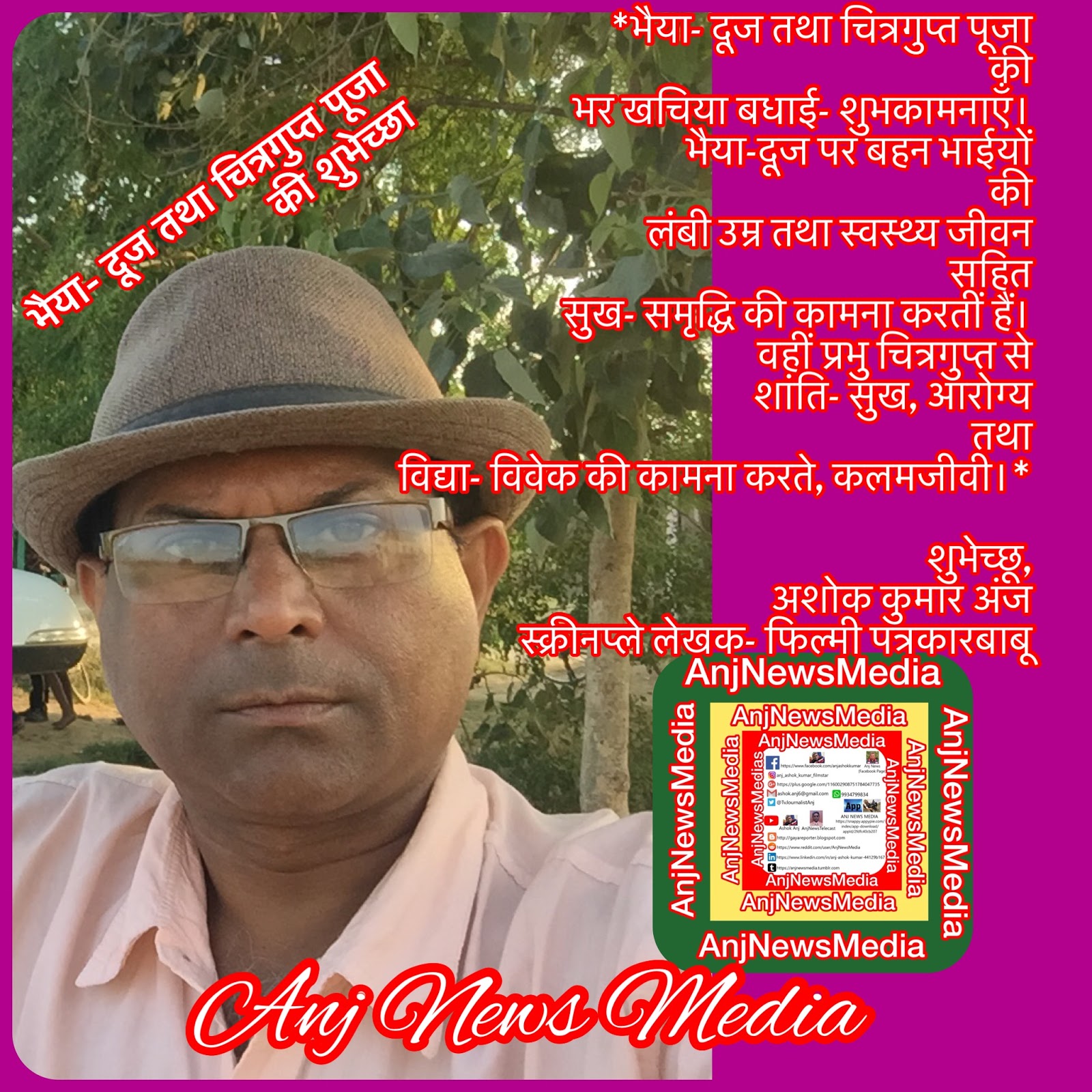 *भैया- दूज तथा चित्रगुप्त पूजा की भर खचिया बधाई- शुभकामनाएँ। भैया-दूज पर बहन भाईयों की लंबी उम्र तथा स्वस्थ्य जीवन सहित सुख- समृद्धि की कामना करतीं हैं। वहीं प्रभु चित्रगुप्त से शांति- सुख, आरोग्य तथा विद्या- विवेक की कामना करते, कलमजीवी।*