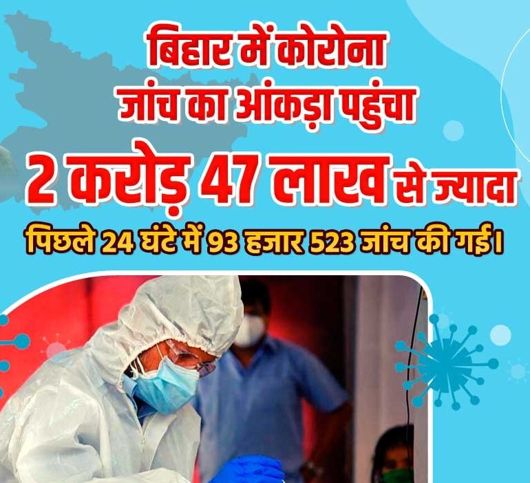 Bihar Corona Breaking April 13, 2021 by News Online India Corona Breaking Advertisement बिहार : कोरोना जांच का आंकड़ा 2 करोड़ 47 लाख से हुआ पार। पिछले 24 घंटे में 93 हजार 523 हुई जांच। फिलवक्त 2 करोड़ 47 लाख 43 हजार 506 हुई जांच- स्वास्थ्य मंत्री। ➖AnjNewsMedia