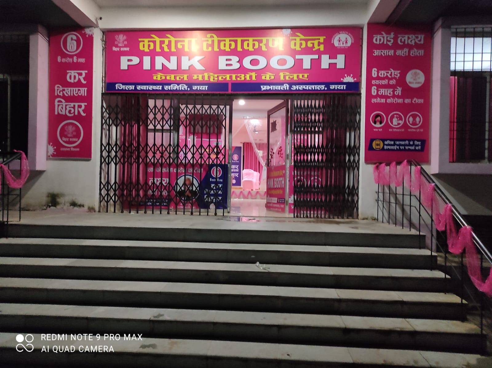 महिलाओं के सुरक्षित टीकाकरण करने हेतु कोरोना टीकाकरण केंद्र पिंक बूथ प्रभावती अस्पताल को चिन्हित किया गया है, जिसमें सिर्फ महिलाओं का ही टीकाकरण किया जाएगा। महिलाओं को कोविड-19 का टीकाकरण इस संस्थान में प्रत्येक दिन पूर्वाहन 9:00 बजे से रात्रि 9:00 बजे तक किया जाएगा। जिसका उद्घाटन जिला पदाधिकारी, गया श्री अभिषेक सिंह द्वारा किया गया। इस मौके पर ज़िलाधिकारी की धर्मपत्नी ने पंजीकरण काउंटर पर पंजीकरण कराते हुए कोविड का टीका लिया।