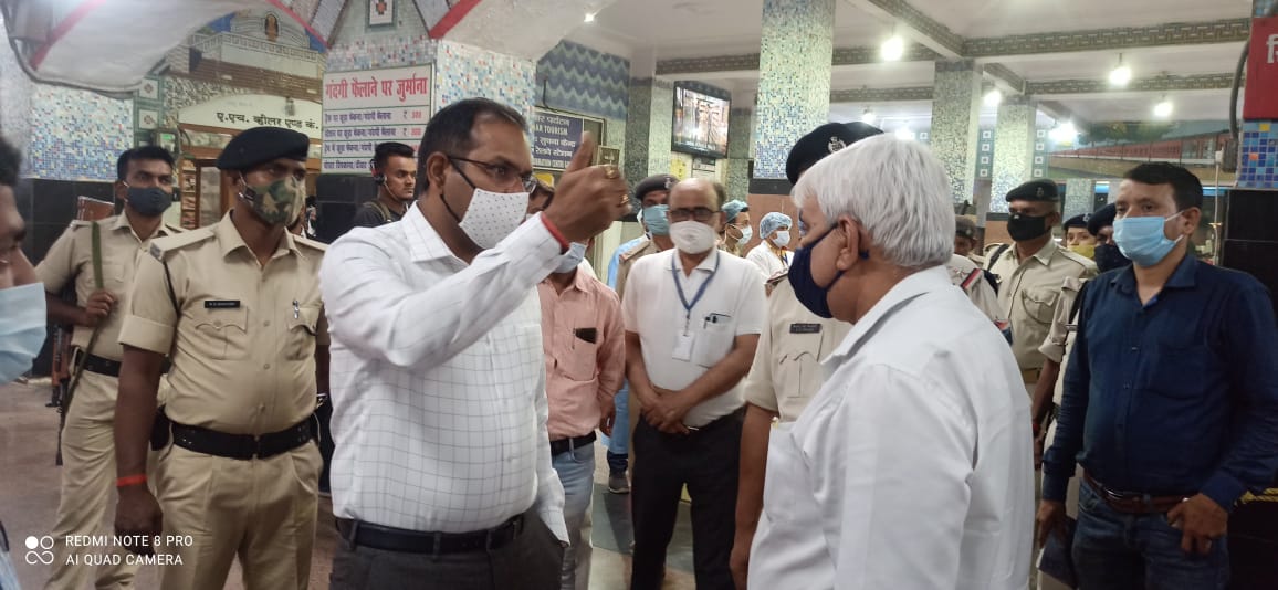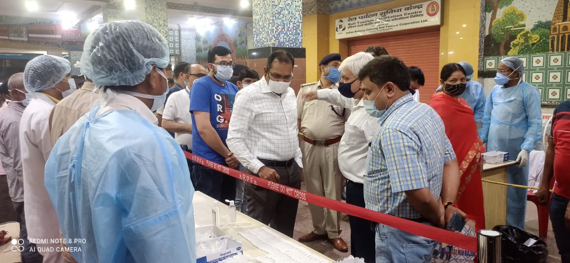 स्टेशन पर कोविड जांच केंद्र का निरीक्षण