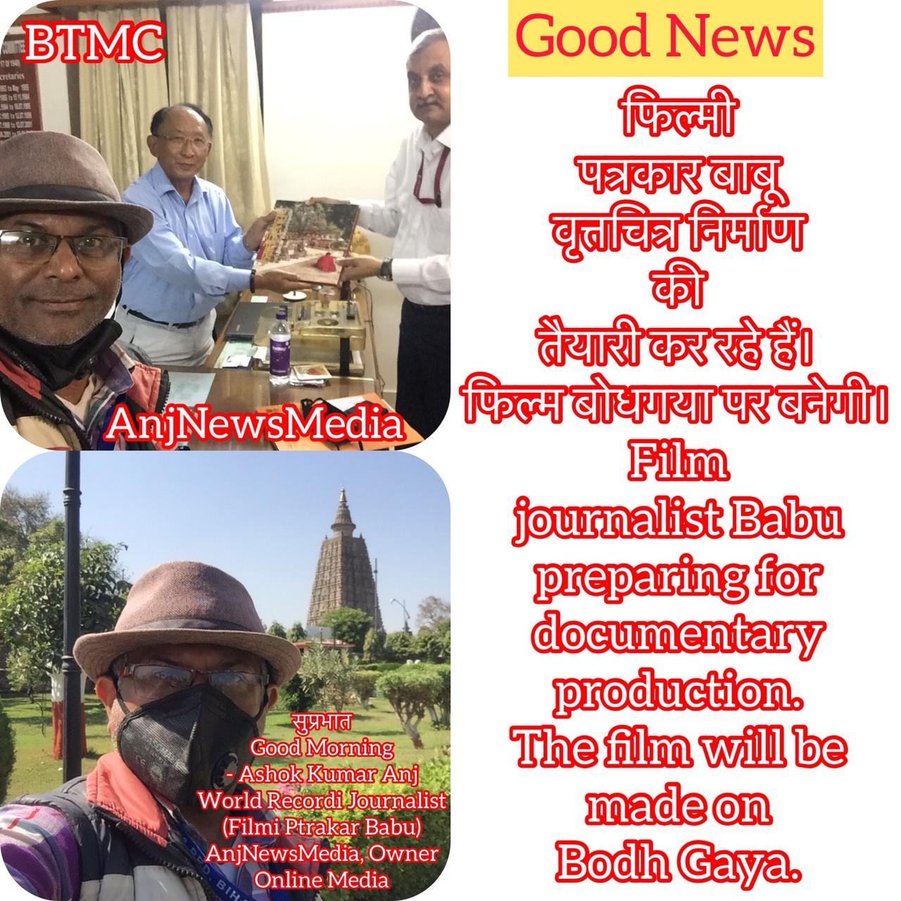 गया : फिल्मी पत्रकार बाबू वृत्तचित्र निर्माण की तैयारी कर रहे हैं। फिल्म बोधगया पर बनेगी।