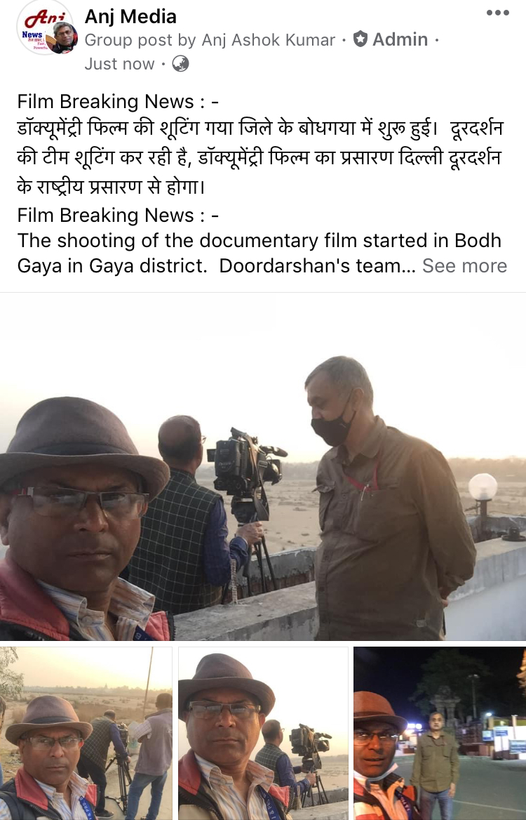 डॉक्यूमेंट्री फिल्म की शूटिंग गया जिले के बोधगया में शुरू हुई। दूरदर्शन की टीम शूटिंग कर रही है, डॉक्यूमेंट्री फिल्म का प्रसारण दिल्ली दूरदर्शन के राष्ट्रीय प्रसारण से होगा।