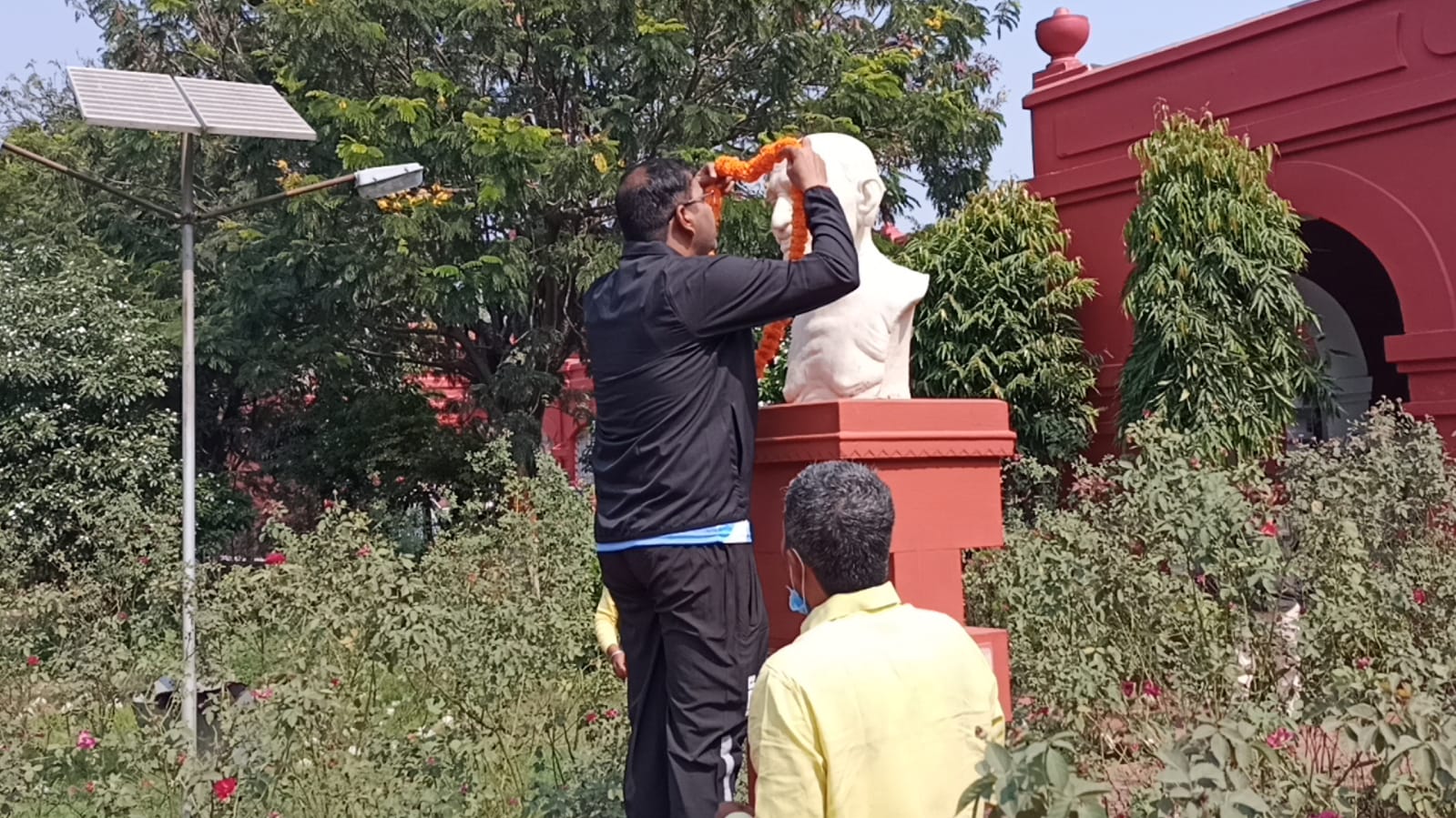 | लौह पुरुष पटेल को श्रद्धांजलि अर्पित करते डीएम अभिषेक |