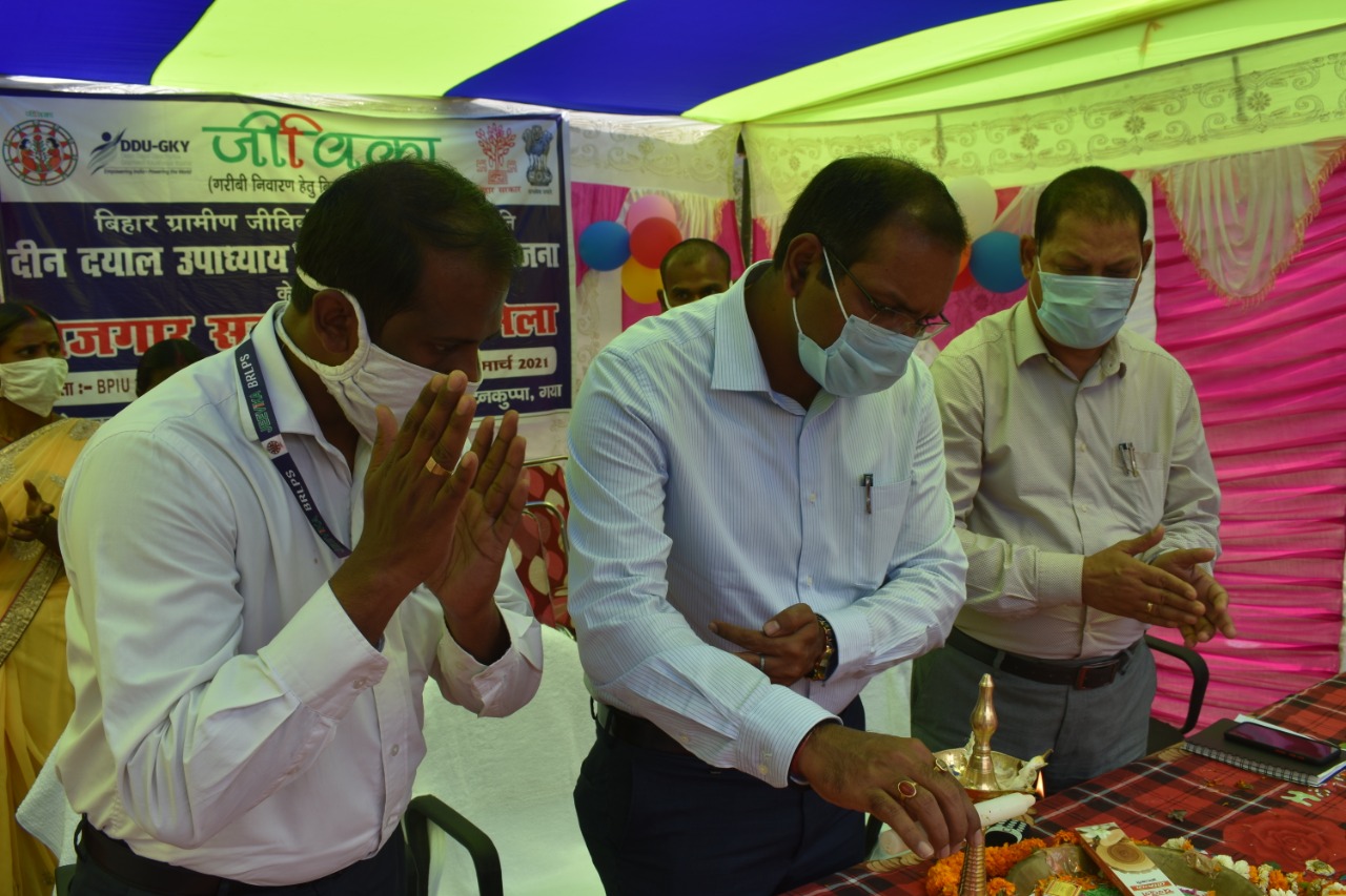 गया : टनकुप्पा प्रखंड के महेर पंचायत में जीविक द्वारा दीनदयाल उपाध्याय ग्रामीण कौशल योजना के अंतर्गत एक रोजगार सह मार्गदर्शन मेला का आयोजन किया गया, जिसका उद्घाटन जिला पदाधिकारी, गया श्री अभिषेक सिंह द्वारा दीप प्रज्वलन कर किया गया।