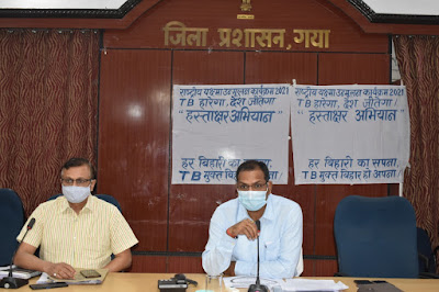 बैठक में जिला पदाधिकारी द्वारा राष्ट्रीय यक्ष्मा (टीबी) उन्मूलन कार्यक्रम की समीक्षा के क्रम में जिला यक्ष्मा पदाधिकारी डॉ पंकज कुमार द्वारा बताया गया कि यक्ष्मा नियंत्रण हेतु जन जागरूकता कार्यक्रम चलाया जा रहा है। आज राष्ट्रीय यक्ष्मा उन्मूलन कार्यक्रम के जनजागरूकता तथा प्रचार प्रसार हेतु *हस्ताक्षर अभियान* का शुभारंभ ज़िला पदाधिकारी द्वारा हस्ताक्षर कर किया गया। इस हस्ताक्षर अभियान में – *टीबी हारेगा, देश जितेगा तथा हर बिहारी का सपना, टीबी मुक्त बिहार हो अपना* का स्लोगन दिया गया है। दिनांक-24 मार्च को विश्व यक्ष्मा दिवस के अवसर पर गया ज़िले में यक्ष्मा नियंत्रण तथा टीबी के संबंध में व्यापक जन जागरूकता कार्यक्रम चलाया जा रहा है।