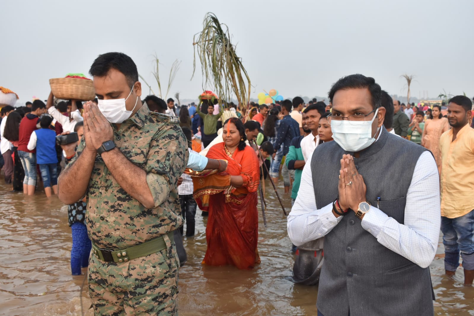 | डूबते हुए सूर्यदेव को डीएम- एसएसपी ने किया नमन |