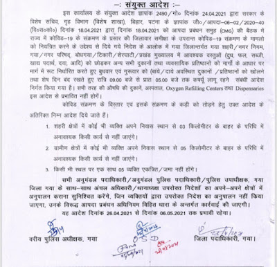 *ज़िला स्तर पर अपर समाहर्त्ता ने बताया कि ज़िले में पॉजिटिव मामले में कमी आ रही है, जो ज़िले के लिए राहत की बात है।* उन्होंने बताया कि अब अधिकतर लोगों के द्वारा मास्क का प्रयोग किया जा रहा है परंतु मास्क पहनने संबंधी अभियान ज़िले में सख्ती के साथ चलाया जा रहा है। उन्होंने बताया कि गया ज़िले में कोरोना मरीजो के लिए लगभग 1000 बेड हैं, जिनमें ऑक्सीजनयुक्त 400 बेड हैं। एएनएमएमसीएच में 236 बेड हैं, जिनमें ऑक्सीजनयुक्त 200 बेड हैं। उन्होंने बताया की आज तक 2,73,354 टीके लगाए जा चुके हैं। ज़िले में आज 679 लोग पॉजिटिव हुए हैं, जो पहले की तुलना में काफी कम है। ज़िले में पॉजिटिव की कुल संख्या 20,465 है, जिसमें से 12,473 लोग रिकवर हो चुके हैं। आज 701 लोग रिकवर हो चुके हैं। अबतक कुल टेस्ट 10,13,043 टेस्ट कराए गए हैं, जिसमे से आज 5681 टेस्ट किये गए हैं। ज़िले में एक्टिव केस की संख्या 7,901 है।