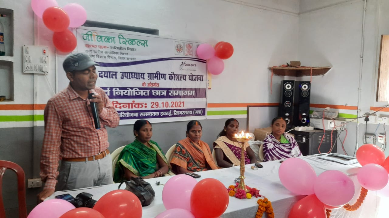 गया: जीविका द्वारा नीमचकबथानी एवं खिजरसराय में दीनदयाल उपाध्याय ग्रामीण कौशल्य योजना के रौशनी कार्यक्रम के अंतर्गत प्रशिक्षण पूर्वर्ती छात्रों के समागम कार्यक्रम का आयोजन किया गया।