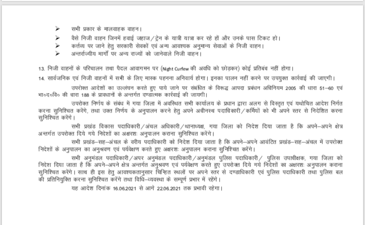 गया अनलॉक दिशानिर्देश अपडेट