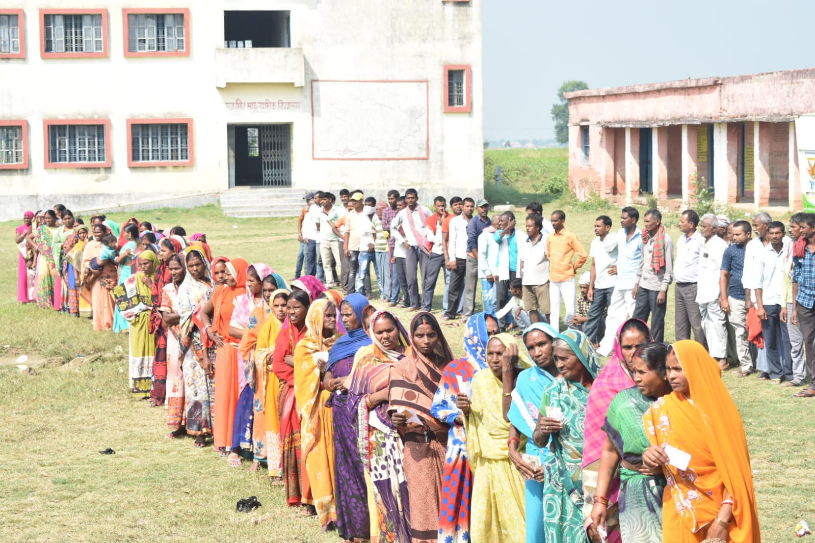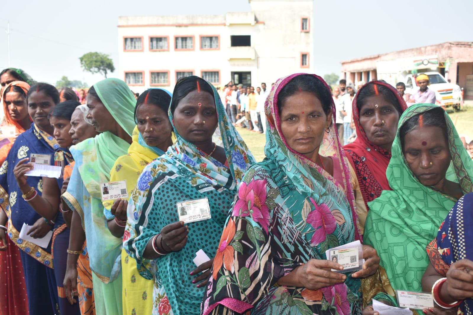 | मतदान केंद्र पर महिला मतदाताओं की कतार |